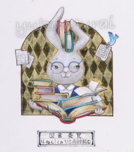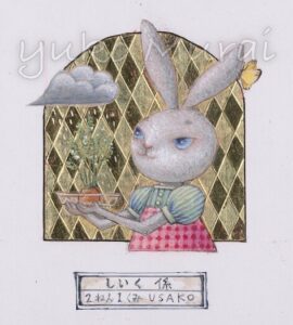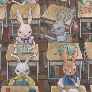 ウエノさんの過去のうさぎ作品からイメージをもらい「うさぎの学校」シリーズを描きました。