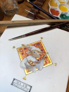 「給食当番 ミミ代」の制作風景。