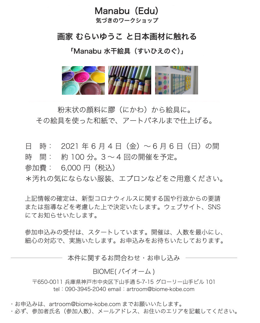その期間には、日本画の水干絵具を使ったワークショップを予定しています。