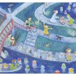 浮かんで遊んで(F8号 絹本着彩) 2013